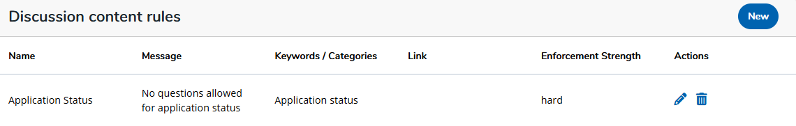 In addition to the Discussion Moderation tab, Admins can also create additional content rules that automatically apply to each new discussion created inside the platform. These rules stop candidates from creating discussions that are deemed inappropriate or deviate from topics that Ambassadors are allowed to answer.