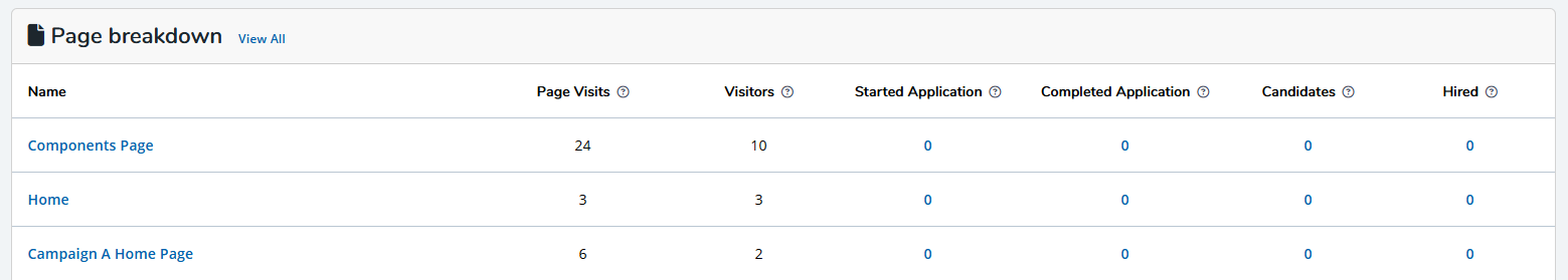 In Recruitment Marketing, it is possible in most cases* to view stats for each stage of the candidate journey at an individual content component level.