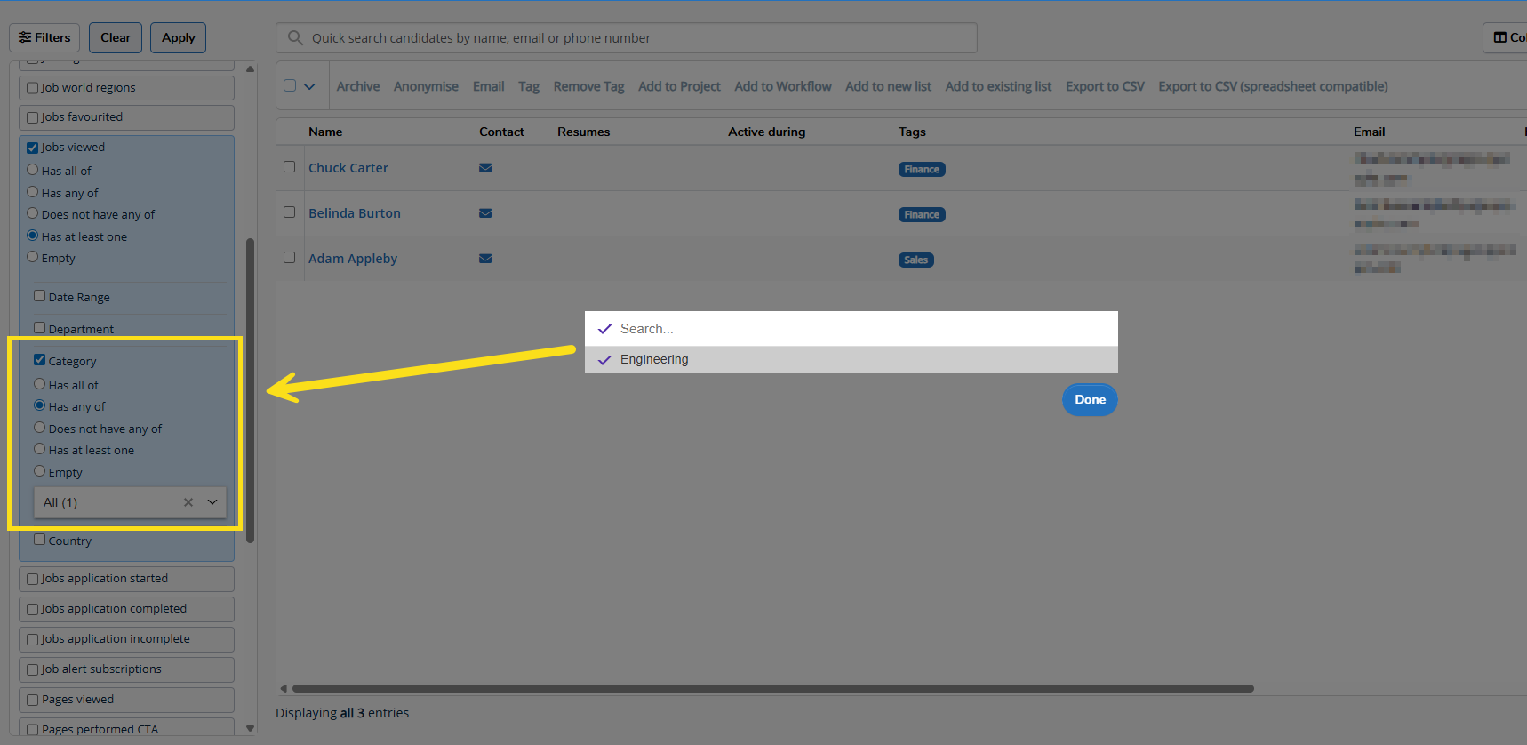 For this scenario, we will focus on the example of segmenting out all those candidates who have demonstrated an interest in Engineering jobs.