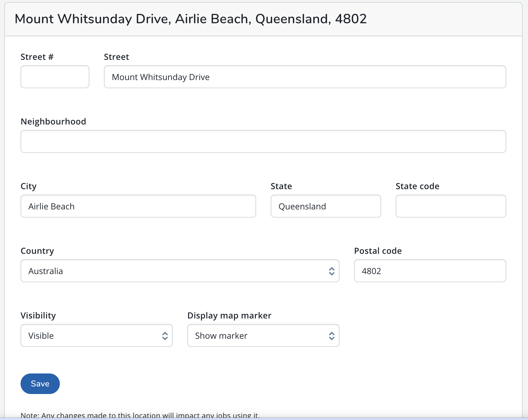- Display map marker: If utilizing map functionality, should this location show on the map.