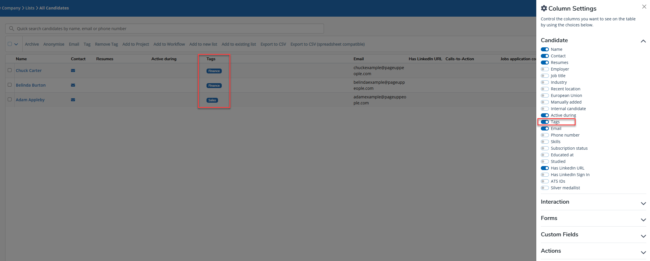 It is easy to create and add tags to candidate records, and to build both smart and static lists using those tags.