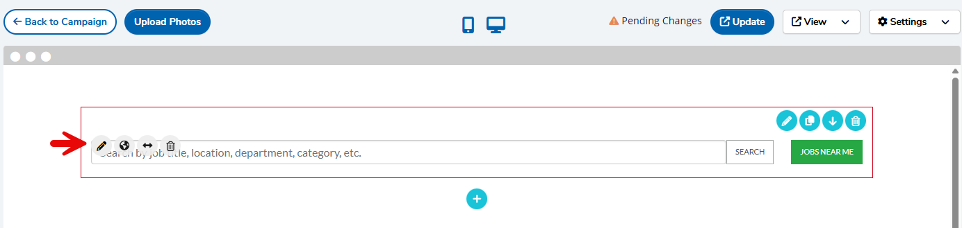 - On the page editor, hover over the Job Search Form block and click the Edit Block icon.