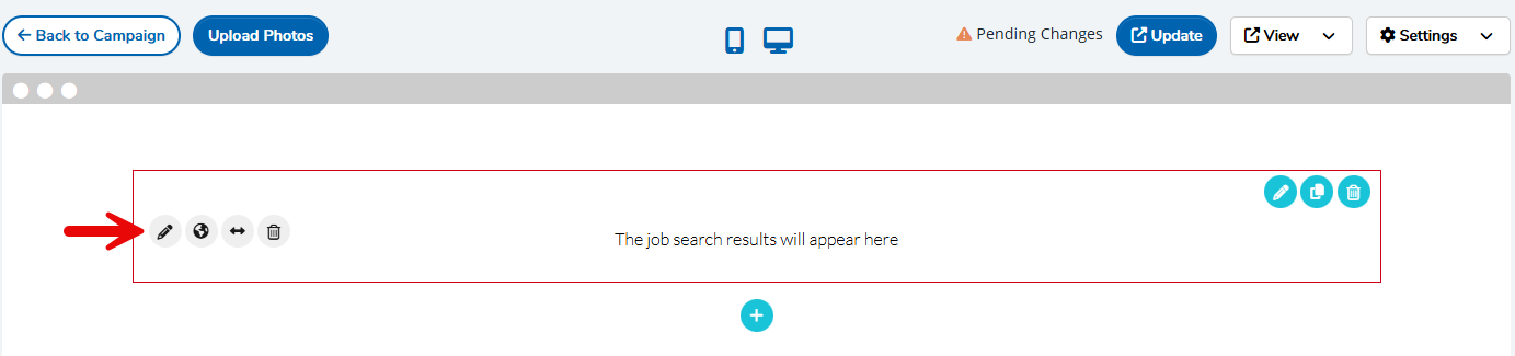 - On the page editor, hover over the Job Search Results block, and click the Edit Block icon.
