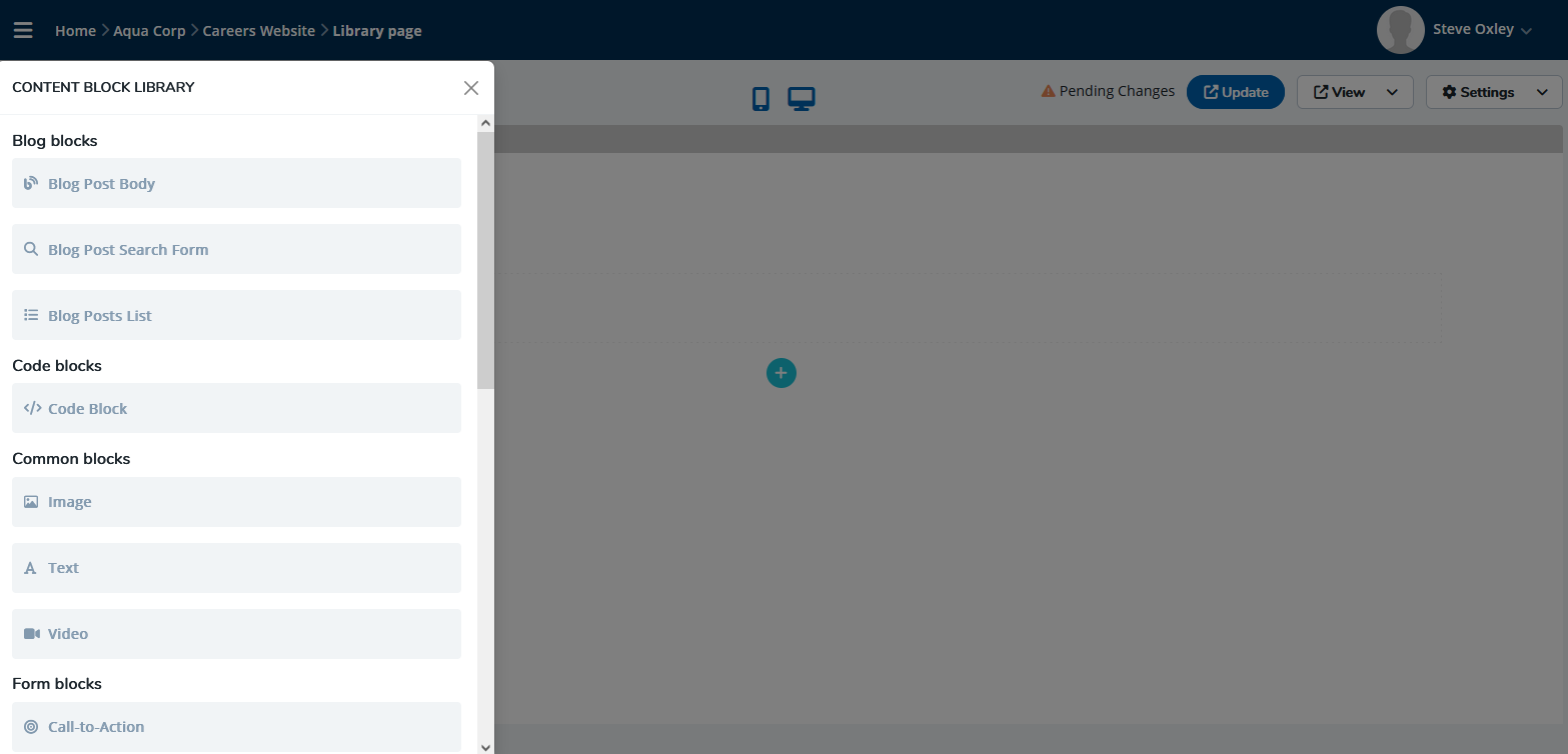 - From the Content Block Library, under Blog blocks, hover over Blog Post Search Form and click Add.