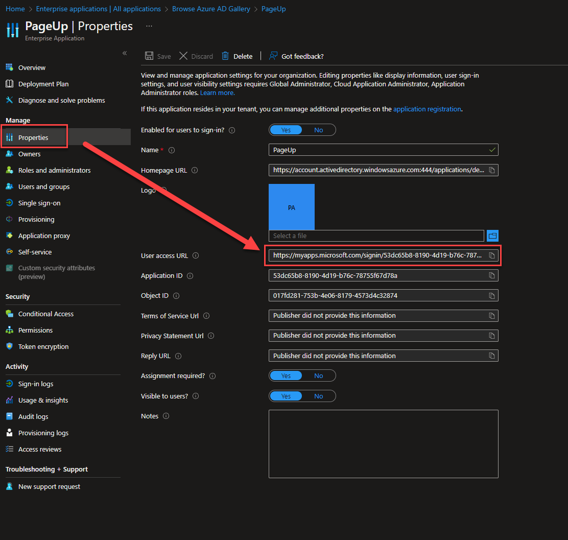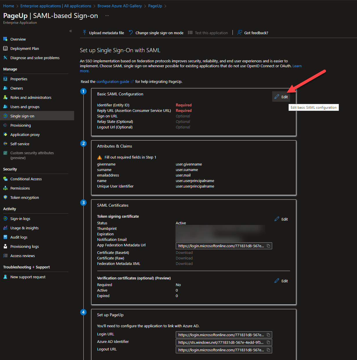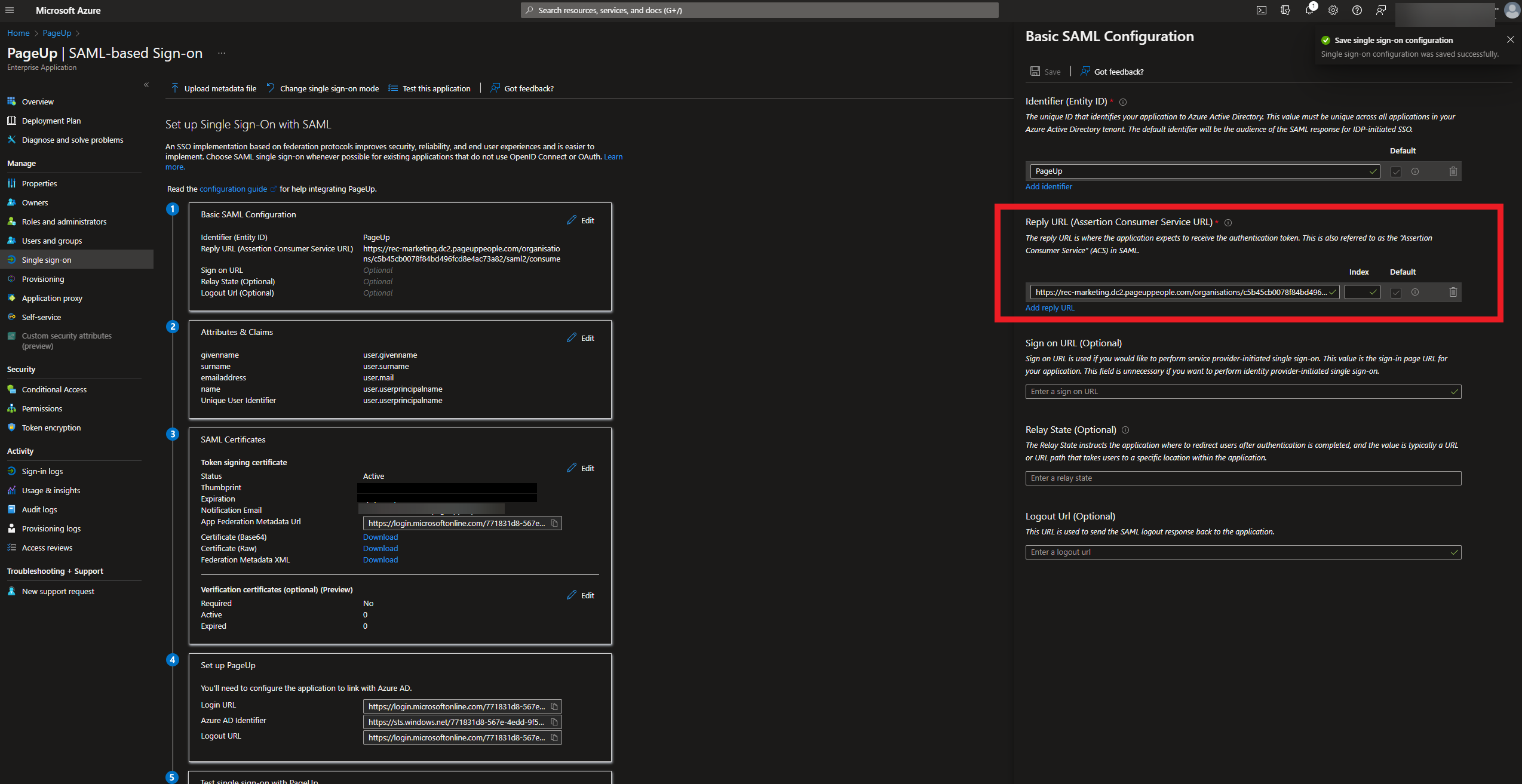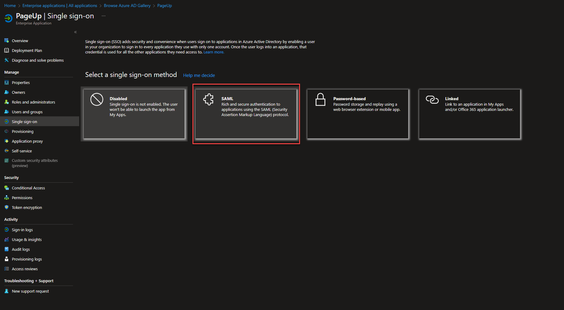 The following guide explains how Entra ID (formerly Azure AD) can be configured for Single sign-on using SAML. This needs to be completed before PageUp can configure any further.