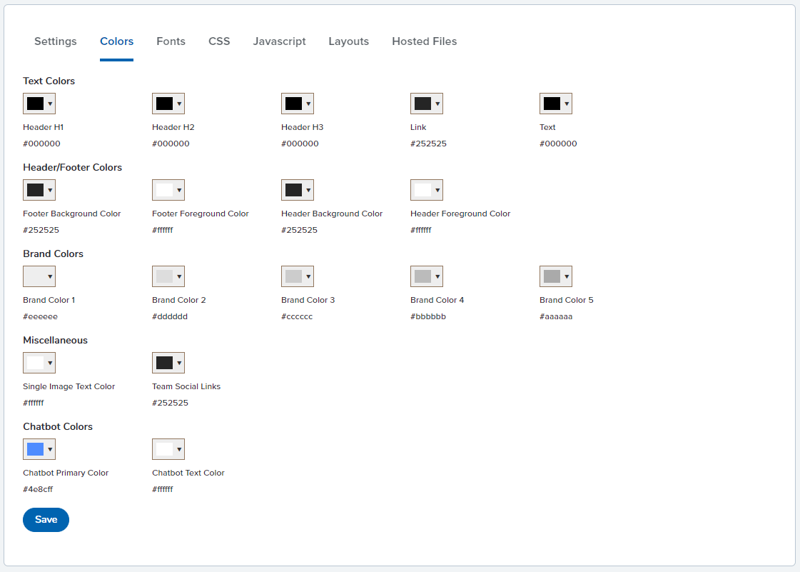 - Click the Hosted Files tab to upload logos and/or social media icons, or fonts as mentioned above. The files must be zipped in a folder for upload, and it is best to separate the fonts from the images.
