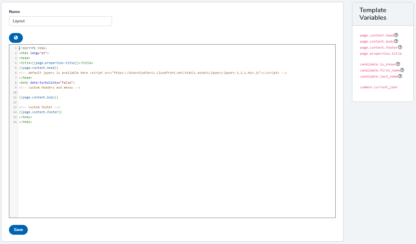 Recruitment Marketing supports the use of 3rd party fonts. To import custom fonts, refer to the W3 Schools guide. - Click the CSS tab to add any custom CSS code and styling. This will automatically override the default theme it was based on.