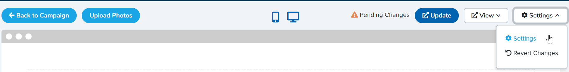 - Next to the relevant page, click the more actions (ellipses) icon and select Settings.