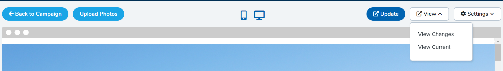 To view the most up-to-date version of a page that is currently live, click the View button, then View Current. The page will open in a new tab.