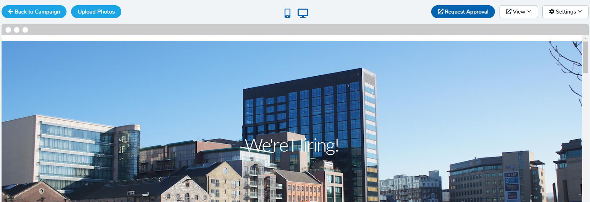 The Page Editor will load, enabling you to create, edit, and display your recruitment marketing content the way you want to. For more information, refer to Page Editor.