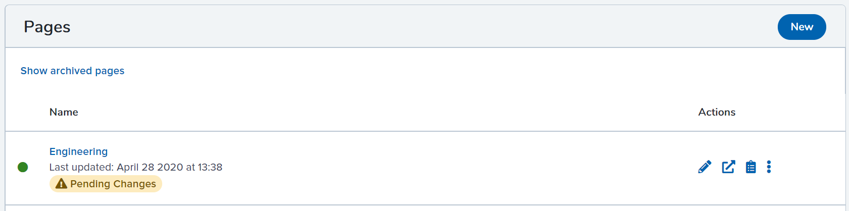 If you are waiting for edits to be approved, when you click into the relevant campaign, a Pending Changes notification displays below the title of the recently updated page on the Pages listing and within the Page Editor.