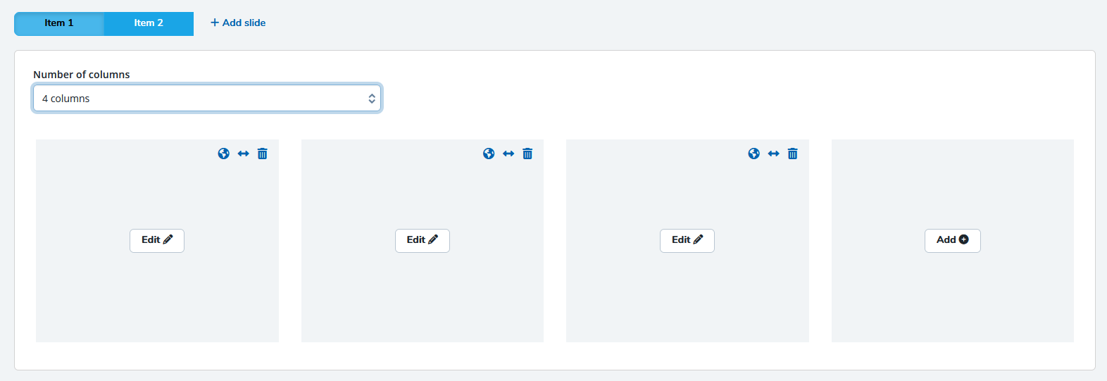 Once you have selected the desired number of columns for the slide, start adding content by clicking Add (or Edit) on the column you would like to update.