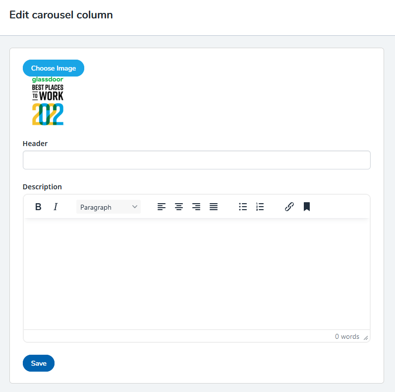 Once you have created a carousel, you can add it to a page in your career site by adding the Carousel block to that particular page.