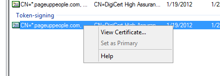 - Select the certificate located under Token-signing.
