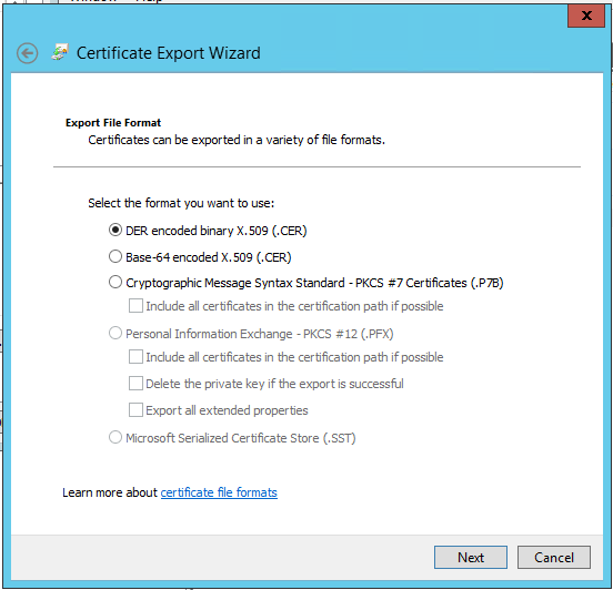 The below guide details how to export the public certificate from your ADFS.