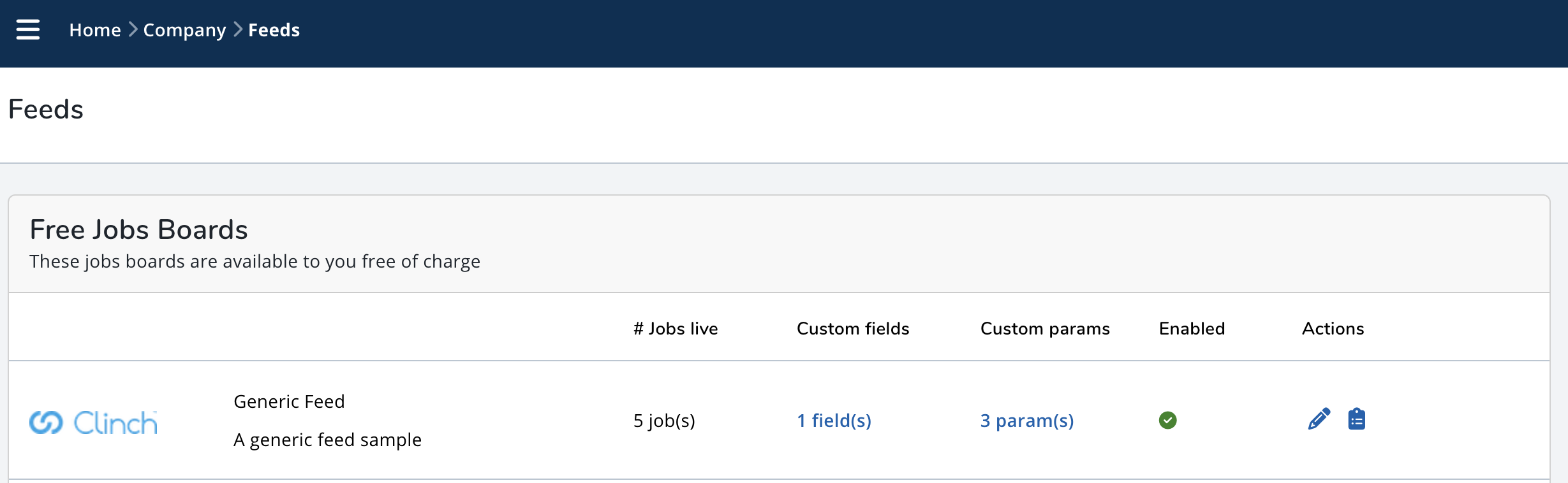 - On the Feeds screen, Free Jobs Boards and Paid Jobs Boards each display with: