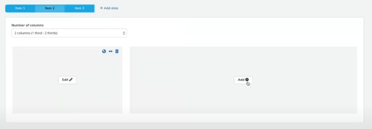 The new option allows your to add columns to a slide in either a 1/3 and 2/3 layout, or alternatively a 2/3 and 1/3 layout. This layout is popular when displaying employee testimonials or quotes, with the 1/3 generally used to show an image of the employee, and the 2/3 used for the text of the quote or testimonial.