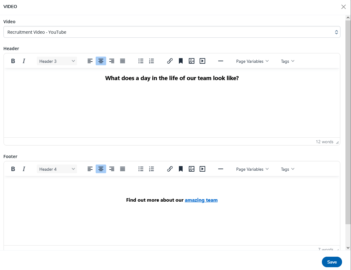 We've enhanced the configuration options available to you when adding a video content block to pages within your Recruitment Marketing powered career site.
