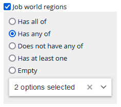 See below for an example of an OR search within the new Job world regions filter: