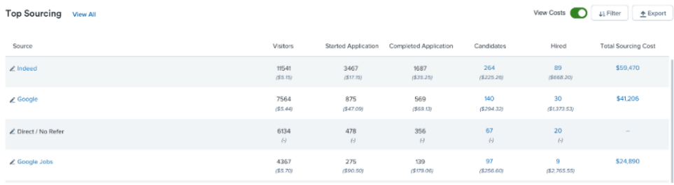 Traffic Sources refer to the origin of a candidate’s visit to your careers site—such as job boards, social media platforms, search engines, or direct links.