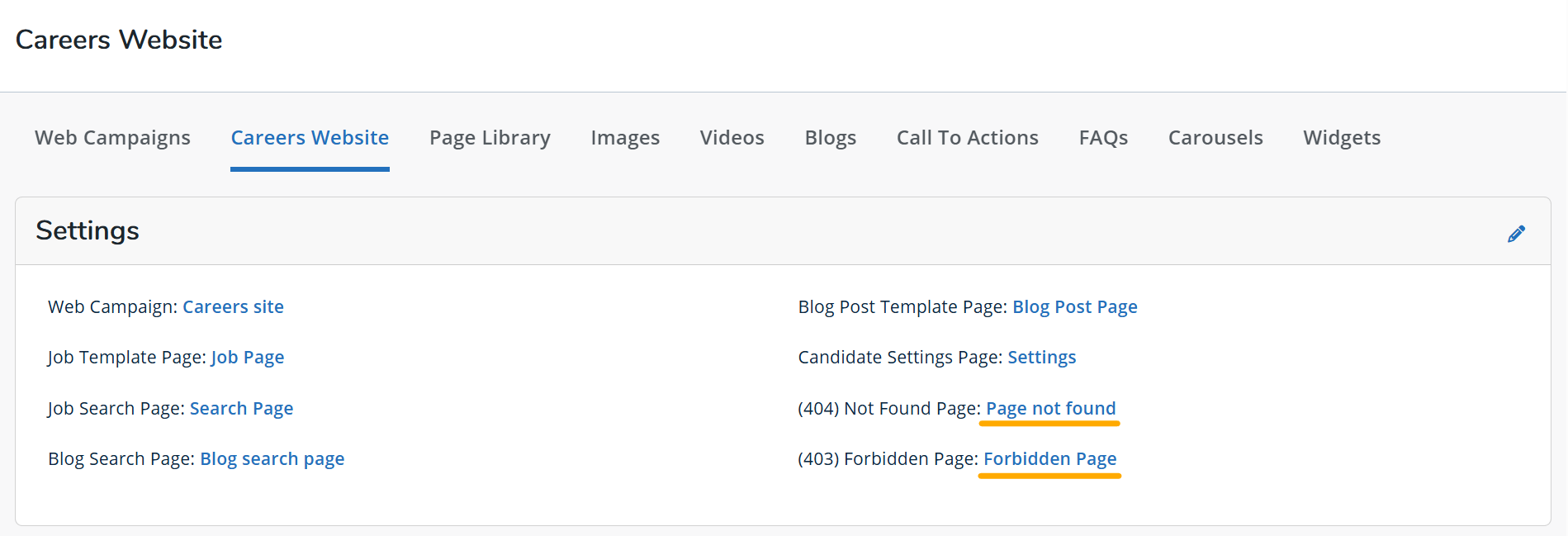 - For information on managing Recruitment Marketing pages, refer to Managing Recruitment Marketing Pages, or